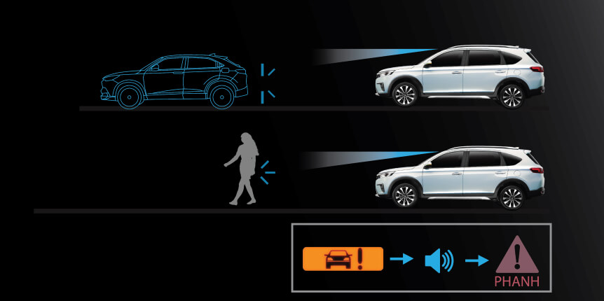 Hệ thống phanh giảm thiểu va chạm (CMBS): Cảnh báo người lái khi phát hiện vật cản phía trước. Ngoài ra, trong trường hợp người lái không thể tránh khỏi va chạm, hệ thống sẽ tự động phanh để giảm thiểu thiệt hại.
