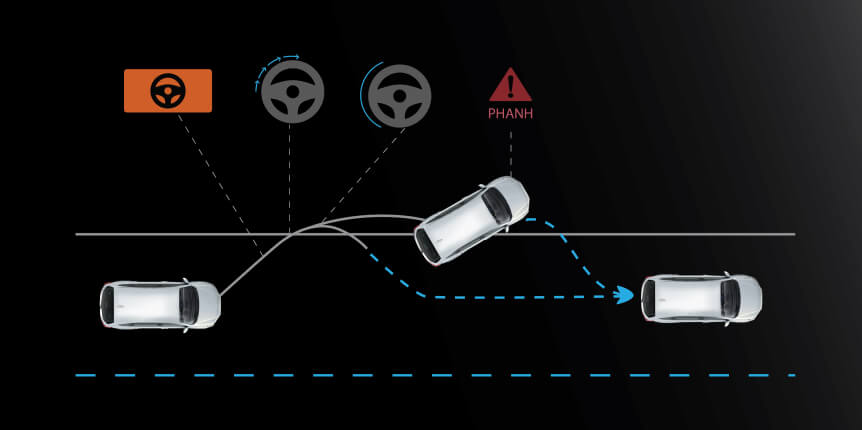 Hệ thống hỗ trợ giữ làn đường (LKAS): Hỗ trợ đánh lái để giữ cho xe luôn đi ở giữa làn đường, đồng thời hiển thị cảnh báo trong trường hợp xe đi chệch khỏi làn đường.