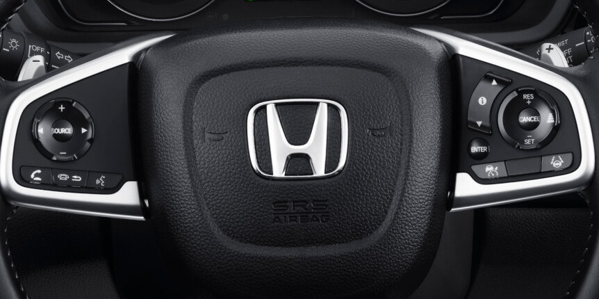 Các nút bấm được tích hợp trên vô lăng vô cùng tiện nghi, cho phép người lái tùy chỉnh các hoạt động và thiết lập các tính năng như đồng hồ hiển thị, thông tin giải trí, đàm thoại rảnh tay và hệ thống Honda SENSING.