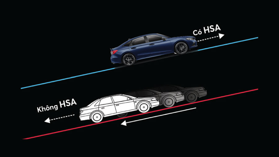 Chế độ hỗ trợ khởi hành ngang dốc (HSA) giúp bạn an tâm và tự tin ở những cung đường dốc.
