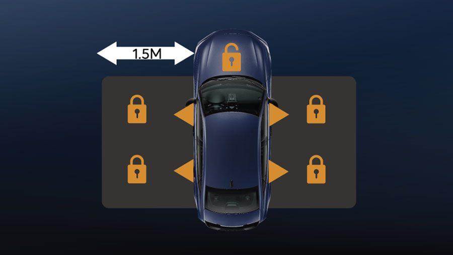 Chức năng khóa cửa tự động thực hiện khi bạn rời khỏi xe và mang theo chìa khóa ra khỏi vùng cảm biến mà không cần bấm nút khóa cửa trên chìa khóa (RS, e:HEV RS).