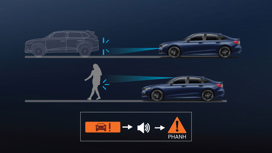 Cảnh báo người lái khi phát hiện vật cản phía trước. Ngoài ra, trong trường hợp người lái không thể tránh khỏi va chạm, hệ thống sẽ tự động phanh để giảm thiểu thiệt hại.