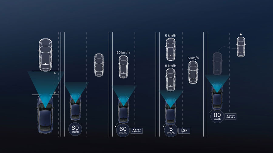 Hỗ trợ duy trì khoảng cách với phương tiện phía trước khi lái xe trên đường cao tốc. Hệ thống sẽ tự động tăng tốc và giảm tốc giúp việc lái xe thoải mái hơn.