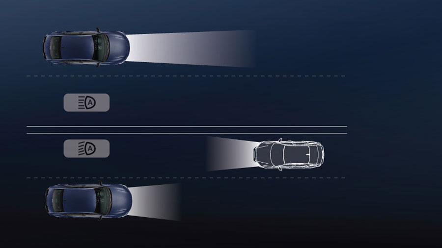 Trong điều kiện lái xe vào ban đêm, hệ thống tự động chuyển đổi giữa đèn chiếu gần và đèn chiếu xa tùy thuộc vào tình trạng giao thông.