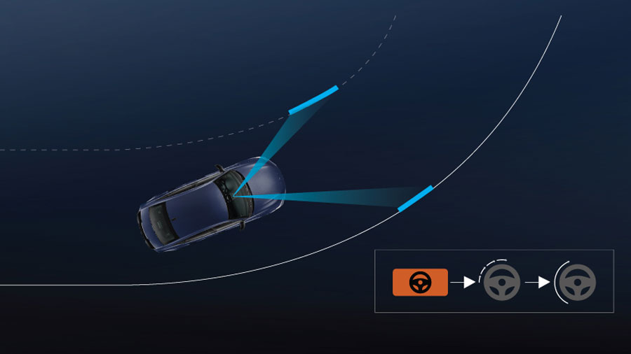 Hỗ trợ đánh lái để giữ cho xe luôn đi ở giữa làn đường, đồng thời hiển thị cảnh báo trong trường hợp xe đi chệch khỏi làn đường.