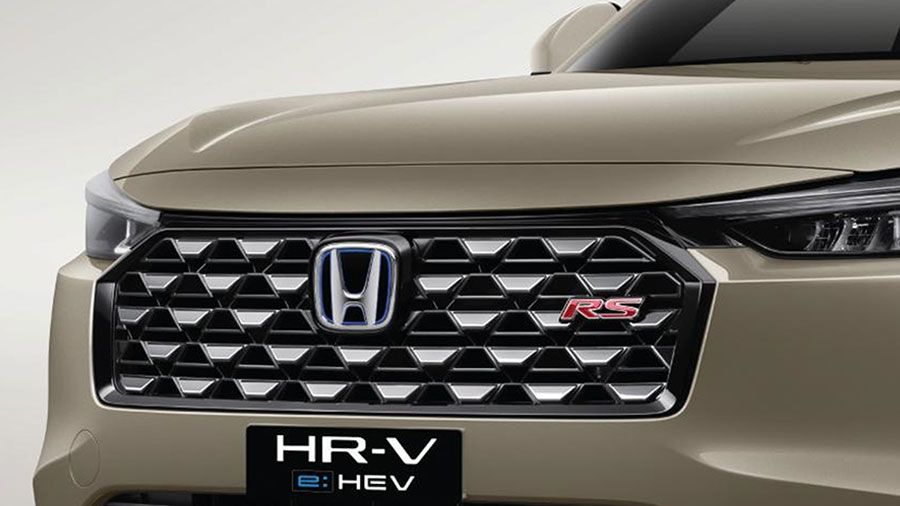 Mặt trước xe nổi bật với ốp ca lăng mạ chrome tạo hình kim cương mang đến một diện mạo sắc sảo và cá tính (e:HEV RS).