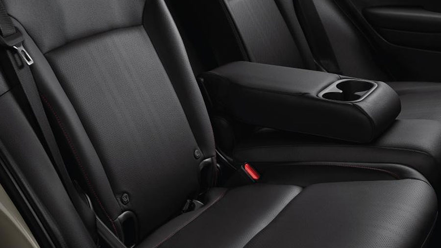 Nội thất bọc da sang trọng với viền chỉ đỏ nổi bật, thể hiện tinh thần thể thao mạnh mẽ (e:HEV RS).